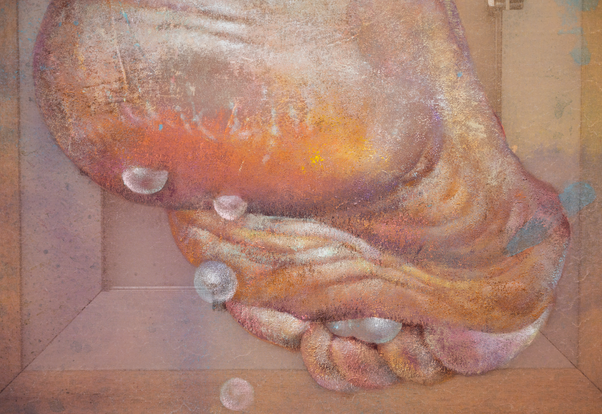 Acrylic on organza, mounted on aluminum stretcher bars